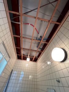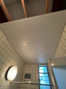キッチンの床下がお風呂場だったため、お風呂場の天井を開け、排水管の入れ替えを行いました。